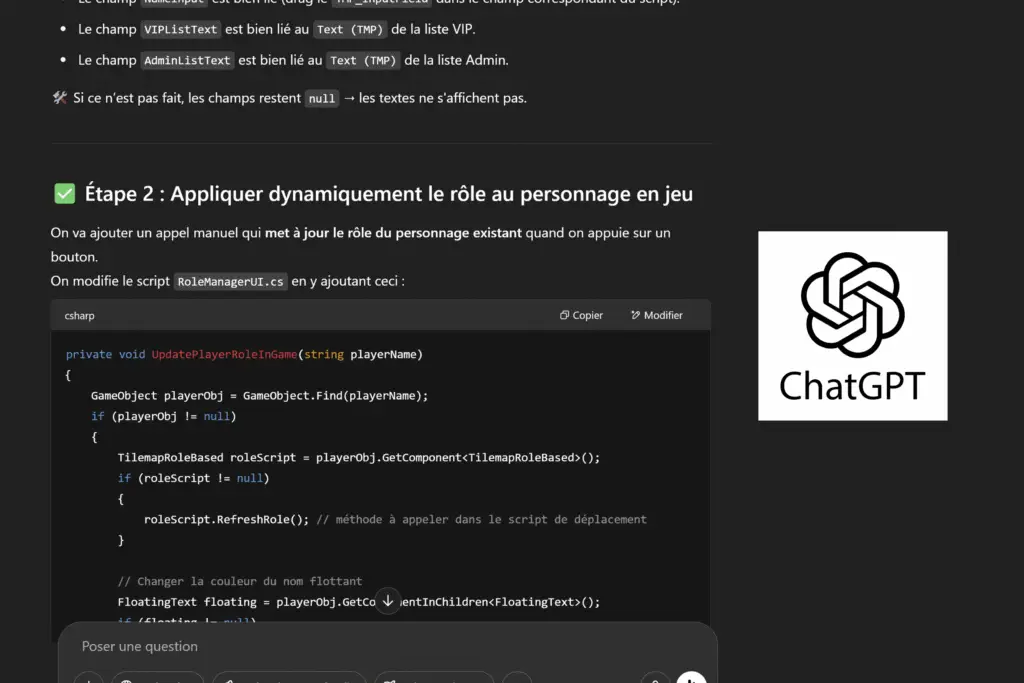Partie 6 : Développement technique et collaboration avec ChatGPT