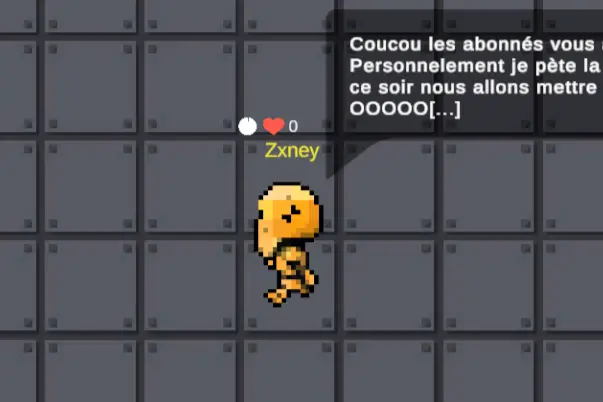 Créer un avatar personnalisé : En envoyant le message « join! » dans le chat, un avatar à leur image apparaît dans le jeu.