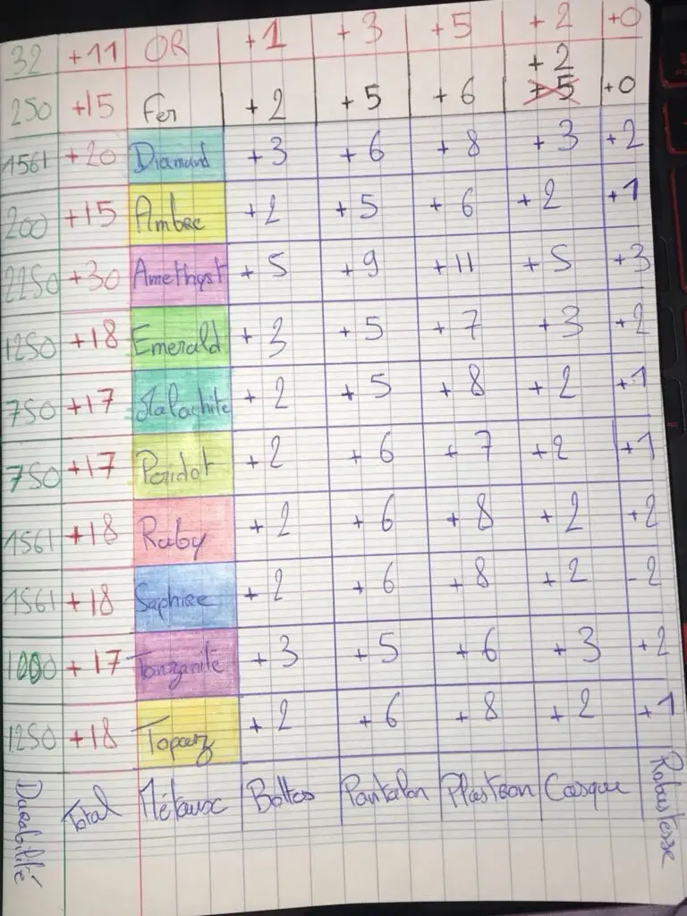 Frustré par ce manque de cohérence, j’ai décidé d’équilibrer le mod en ajustant les statistiques des équipements en fonction de la rareté et de la localisation des minerais. J’ai également retravaillé les visuels des armures pour une meilleure concordance avec les minerais. Après avoir envoyé mes modifications au créateur du mod, il m’a répondu avec enthousiasme, intégrant mes ajustements dans une nouvelle version du mod.